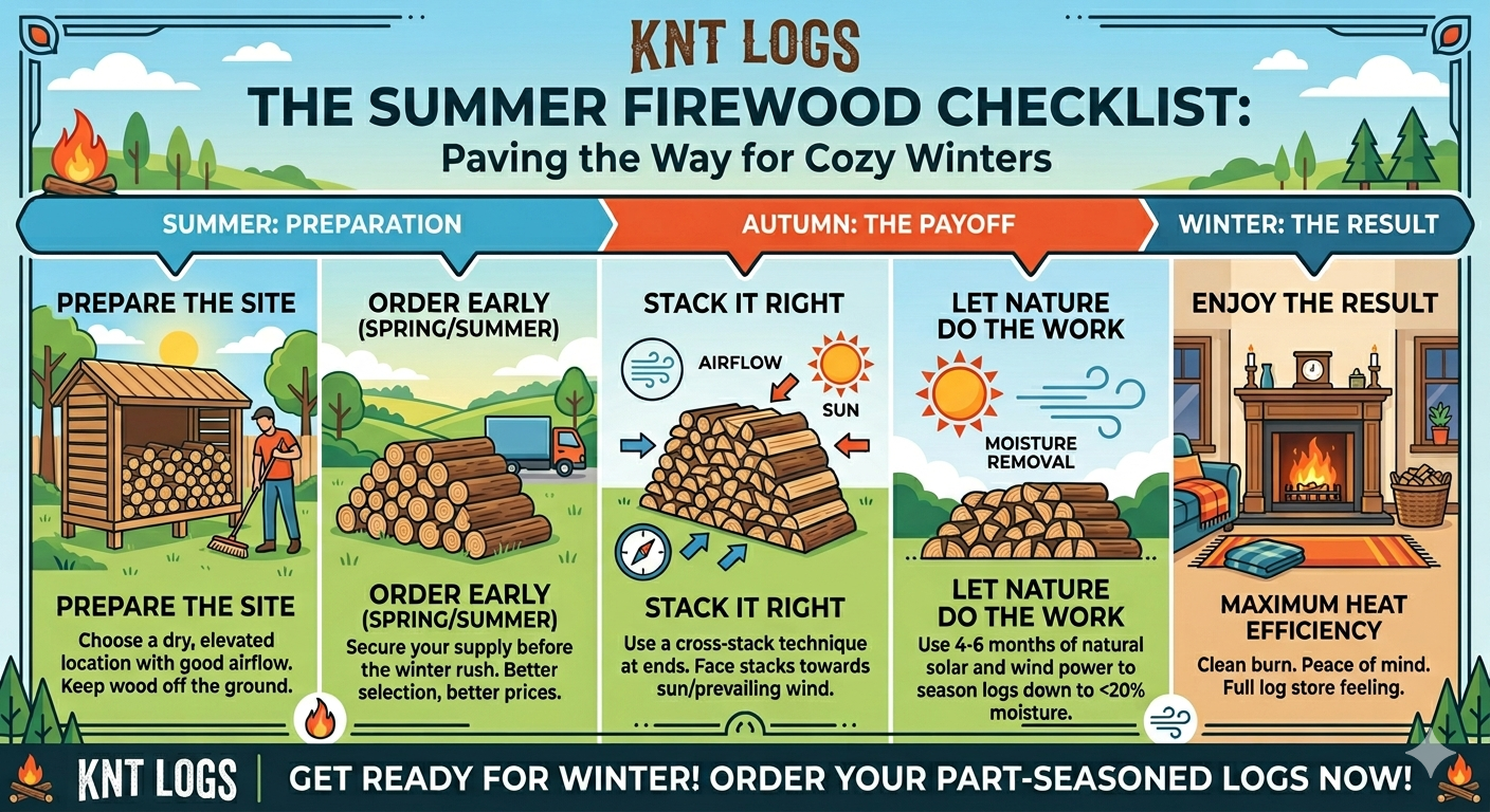 Buying our part-seasoned firewood during the warmer months isn't just a chore off your list—it’s a smart move for your home and your wallet. Here’s why: